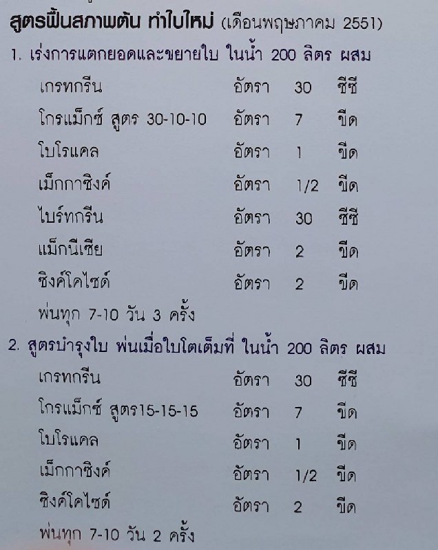 7.สูตรกดใบแก่(หากมีการแตกใบอ่อนระยะลูกเล็ก)