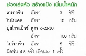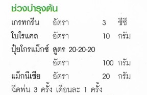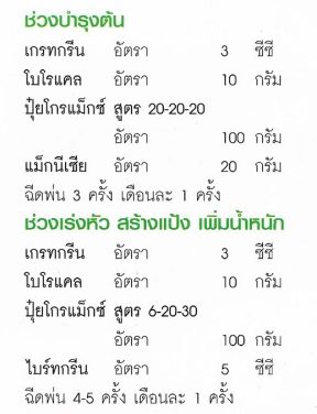 ฉีดพ่นเดือนละครั้ง 4-5 เดือน :ต้นทุน 37บ./ถัง20ลิตร
