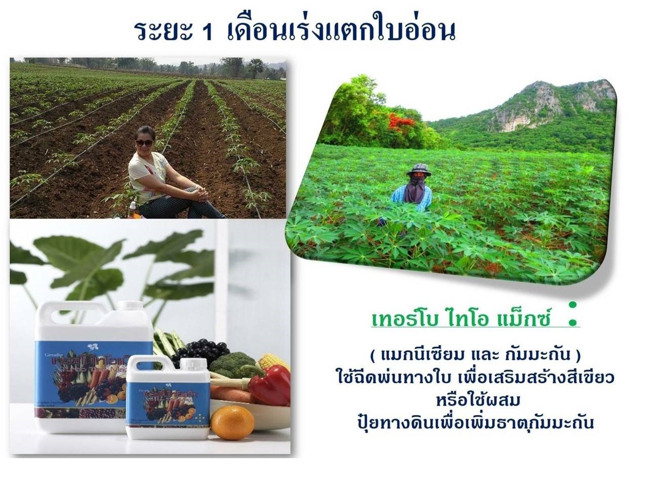 โดยก่อนหน้านี้ ปลูกมันสำปะหลังบนพื้นที่ 4 ไร่ ได้ผลผลิต เพียง20ตัน เฉลี่ย 5 ตัน ต่อไร่ โดยหว่านปุ๋ยทางดินเพียง อย่างเดียว