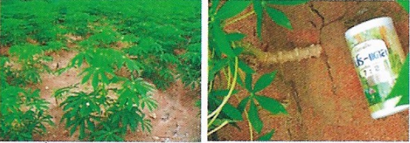 ถ้าต้นมันยอดเหลืองเพราะปลูกในที่ดินซึ่งเป็นด่าง ให้เพิ่มกิฟฟารีน ลิควิดไอออน 50 ซีซี. ต่อน้ำ 200 ลิตร (5 ซีซี.ต่อน้ำ 20 ลิตร) และ ไบรท์กรีน อัตราเดียวกัน