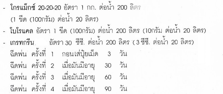 การปลูกครั้งต่อๆไป จะฉีดจนครบ 8 เดือน (เก็บ 9 เดือน)