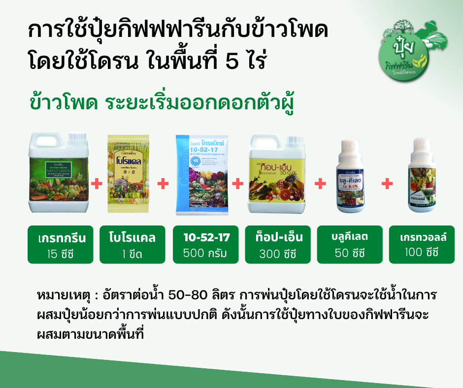 ระยะ แทงช่อดอก (พ่น 1รอบ) ต้นทุนปุ๋ยกิฟฟารีน 50 บาทต่อไร่