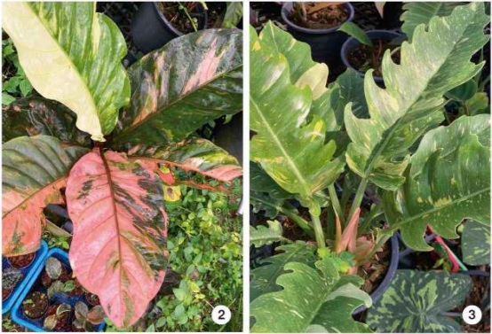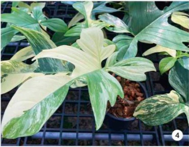 9.ไม้ด่างตระกูลพิโลเดนดรอน ลำต้นอวบใหญ่และหนาต้นดูสมบูรณ์ แตกใบออกเสมอกันทุกข้อ