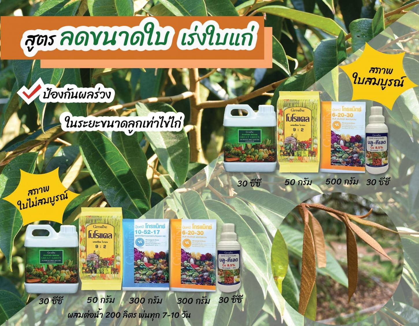 ปุ๋ยทุเรียน ลดขนาดใบ เร่งใบแก่