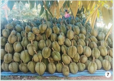 คุณประสูตร : เริ่มเก็บเกี่ยวผลผลิตทุเรียน 110 ต้น ให้ผลผลิต3 พันกว่าลูก โดยเฉลี่ยน้ำหนัก 3-4 กิโลกรัมต่อลูก ทุเรียน 2 รุ่นเก็บได้ 10 ตันกว่า ผมได้ราคา 160 บาทต่อกิโลกรัม เป็นที่ น่าพอใจมากครับ พ่อค้าขอบมาก ทุเรียนทรงสวย หนามสวยเนื้อดี เปลือกบาง เปอร์เซ็นต์แป้งดีมาก ปีนี้ฝนตกตลอด แต่ทุเรียนสวนผม ที่ใช้ปุ๋ยกิฟฟารีนจึงได้คุณภาพดี ประทับใจมากครับ