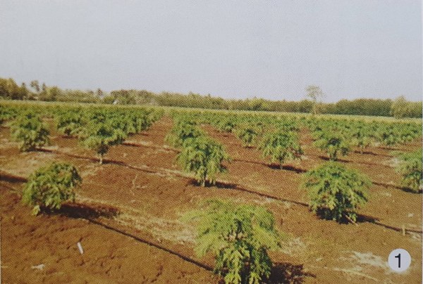 คุณอำนวย : ผมปลูกมะละกอพันธุ์ฮอลแลนด์ ทั้งหมด 11 ไร่ครับ ปลูก 2 แปลง โดยแปลงแรกปลูกก่อน จำนวน 8 ไร่ ตอนนี้เก็บผลมะละกอขายได้ 2 รุ่นแล้วครับ ส่วนแปลงที่สอง ปลูก 3 ไร่ สำหรับ ขั้นตอนในการปลูกมีดังนี้