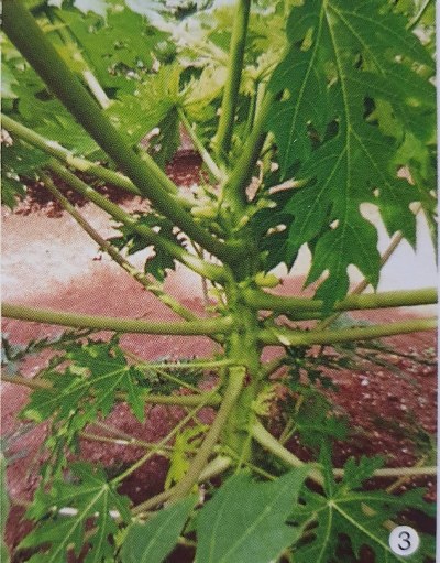 พอมะละกอเริ่มออกดอก จะเปลี่ยนให้ปุ๋ยสูตร 13-13-21 อัตราเดียวกันกับตอนบำรุงต้น