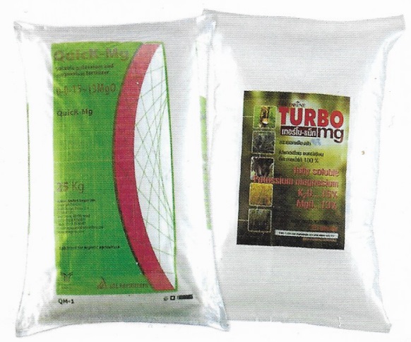เพื่อนๆทุกท่านผมขอแนะนำปุ๋ยทางดินของเรา ซึ่งมีเพียงตัวเดียวคือ เทอร์โบแม็กหรือควิคแม็ก 0-0-15+13 Mg ซึ่งแร่ธาตุธรรมชาติ แร่คานาไรท์จากทะเลสาบเดด ซึ่ง ให้ธาตุโปแตสเซียม 15% และแมกนีเซียม (MgO) 13% โดยแมกนีเซียมเป็นส่วนประกอบสำคัญของคลอโรฟิลล์ ทำให้ใบยาง เขียวขึ้น ใบหนาขึ้น เมื่อโรงครัวดี ทำให้ลำต้นยางขยายดี เปลือกหนาหน้ายางไม่แห้งนะครับ และที่สำคัญ เปอร์เซ็นต์น้ำยางขึ้น ยางน้ำหนักเพิ่มขึ้นครับ