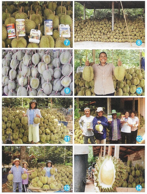 14.นักวิชาการจากบริษัทฯ เน้นปุ๋ยเกล็ดโกรแม็กซ์ 6-20-30 ฉีดพ่นก่อนเก็บ 2 ครั้ง ทุเรียนเข้าสีเร็ว ผิวเนื้อเหลืองจากนอกถึงเนื้อใน และน้ำหนักยังเพิ่มขึ้นด้วย