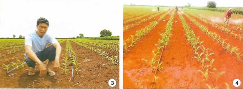ภาพ3-4:คุณสุรพงษ์กับต้นข้าวโพดหลังปลูกแล้ว 1 อาทิตย์ &พ่นปุ๋ยบำรุงต้นตอนหลังปลูกประมาณ 25 วัน
