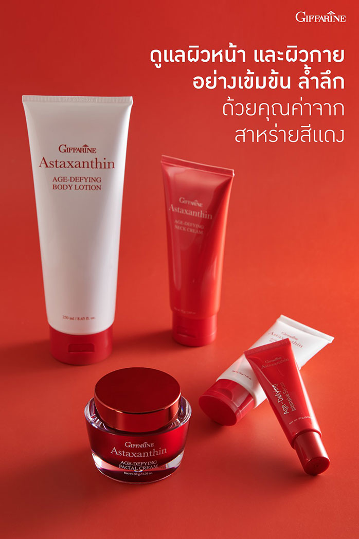 ที่สุดแห่งการลดเลือกริ้วรอย กิฟฟารีน แอสตาแซนธิน เอจ-ดีไฟอิ้ง เฟเชียล เซต แอสต้าแซนธินเข้มข้น ที่ช่วยให้ริ้วรอยจางลง ผิวดูตึงกระชับ อ่อนกว่าวัย